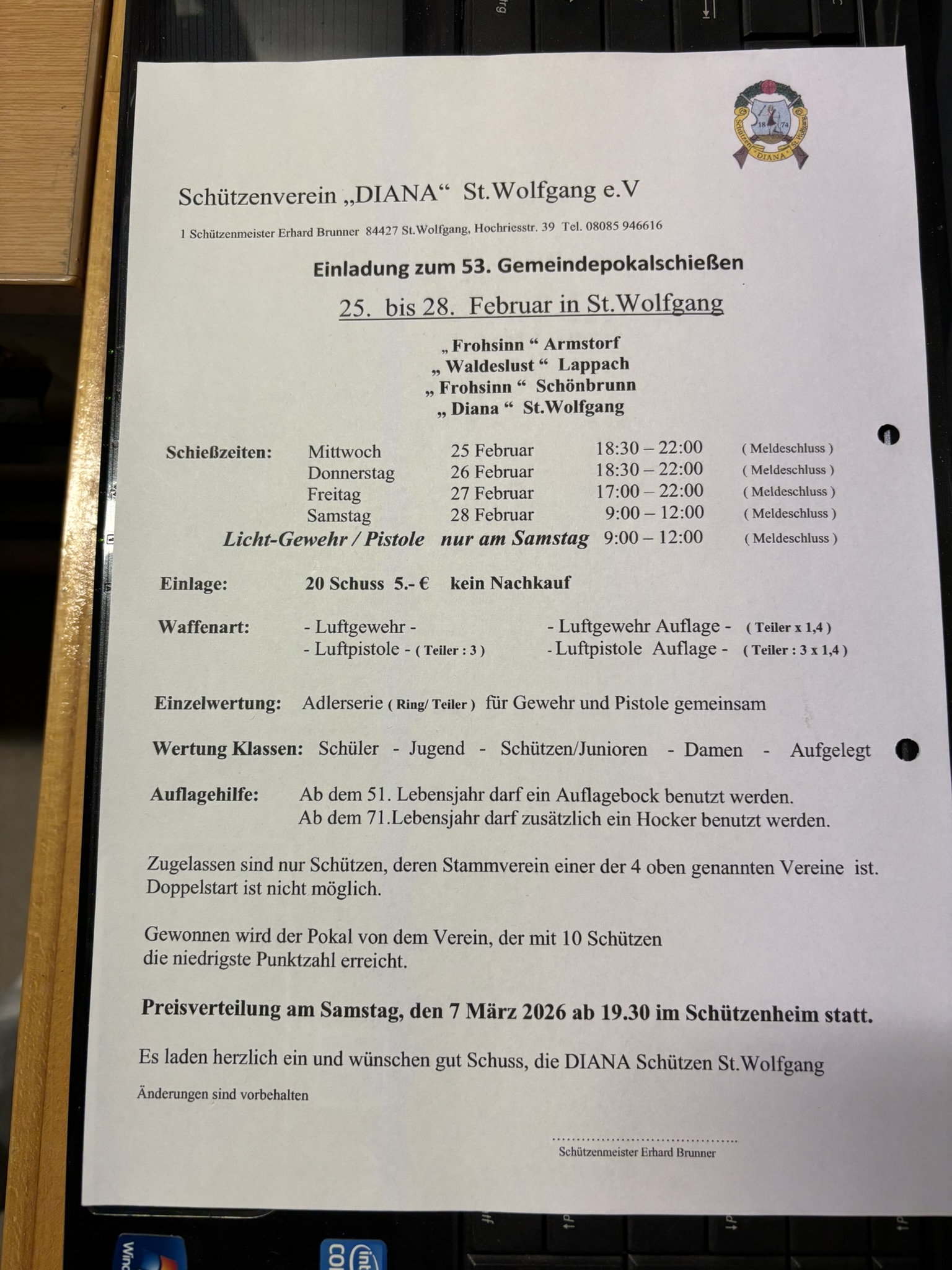 53.Gemeindepokalschießen 2026 in St. Wolfgang